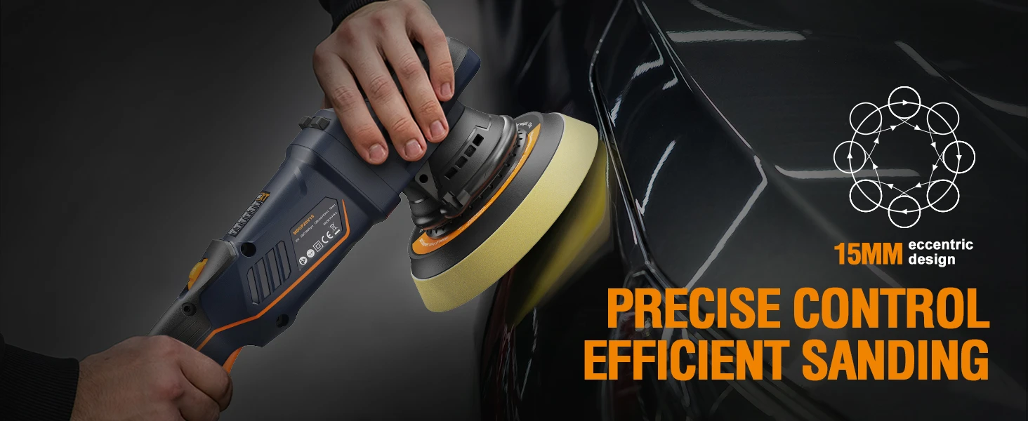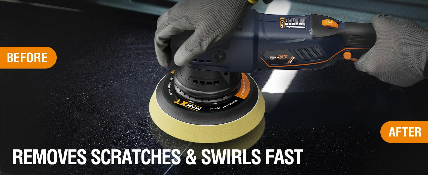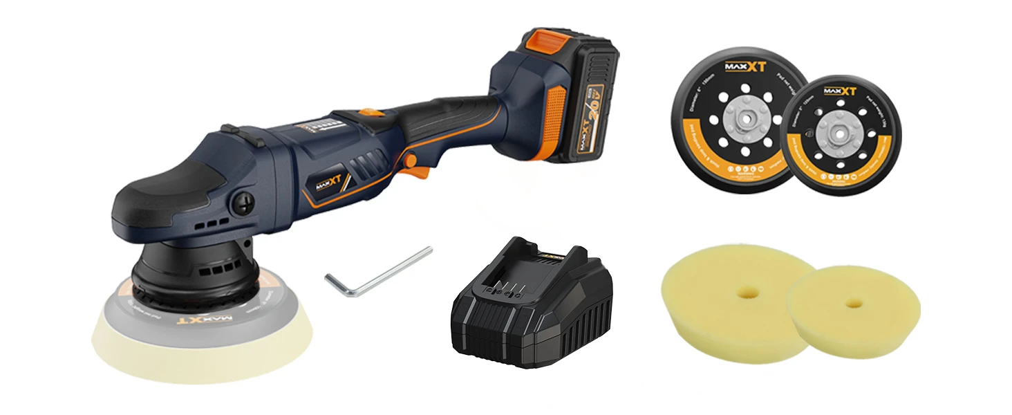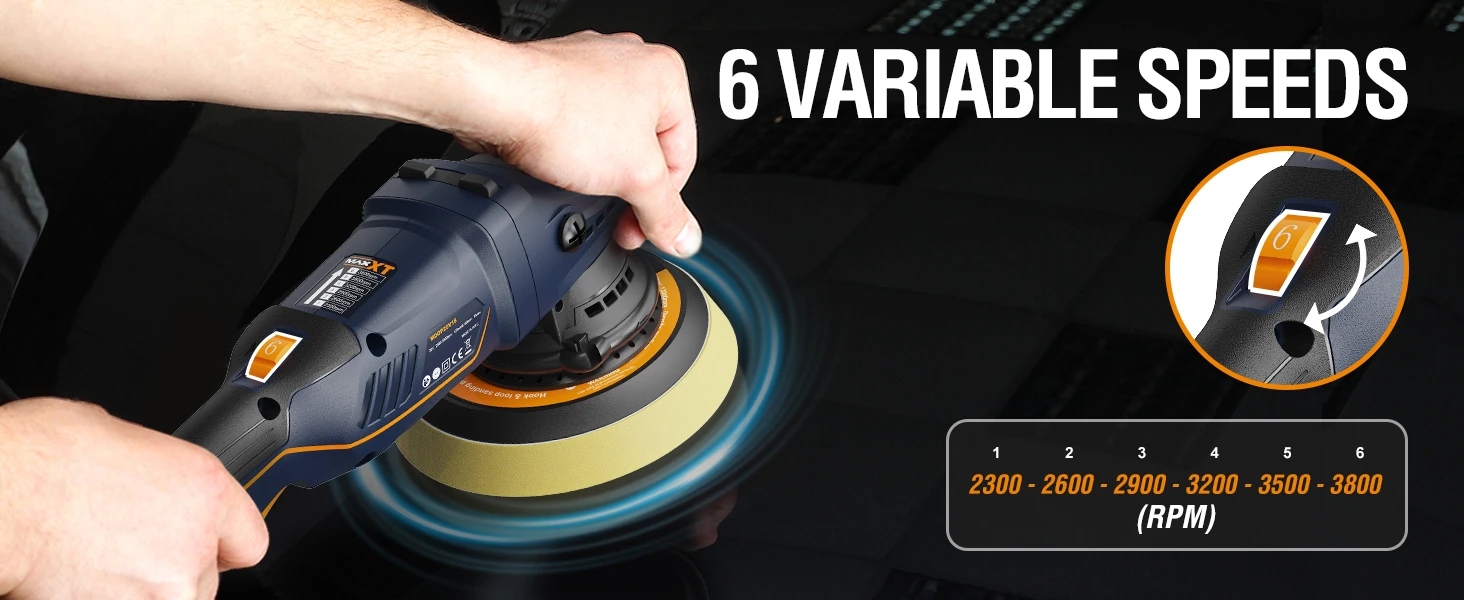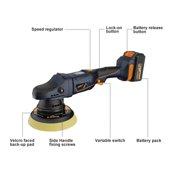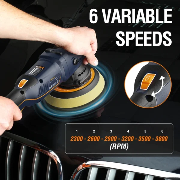 Polisseuse orbitale sans fil, plaque de support de 150 mm/6 po, puissance à double action de 2 300 à 3 800 tr/min