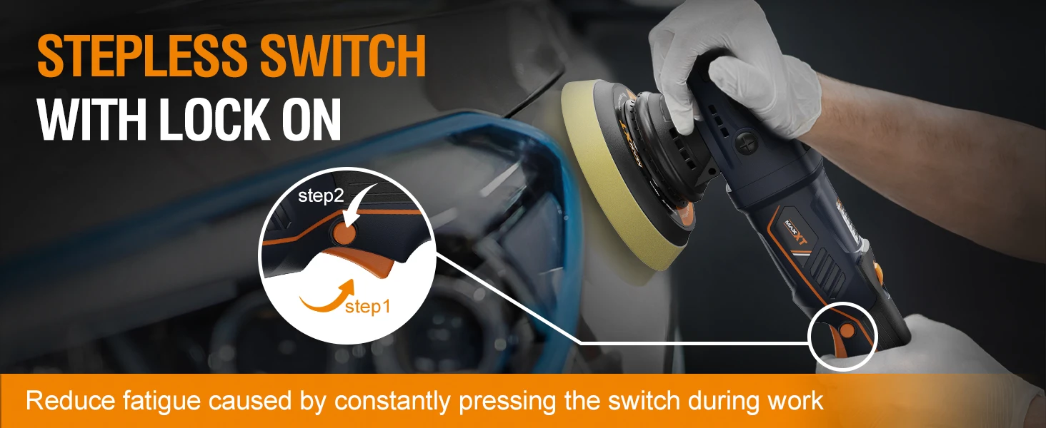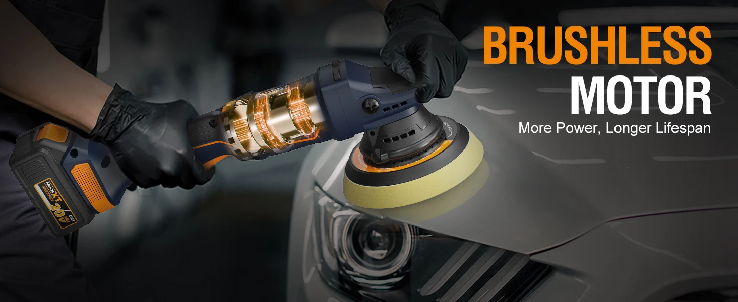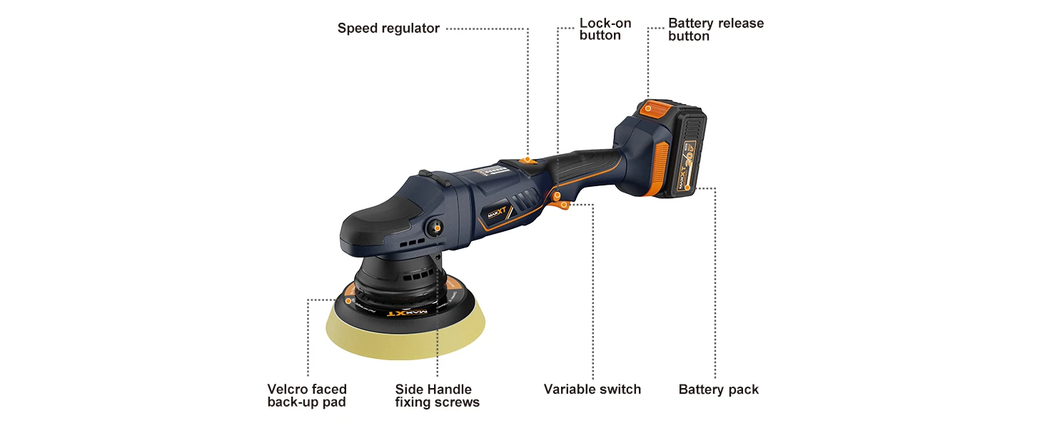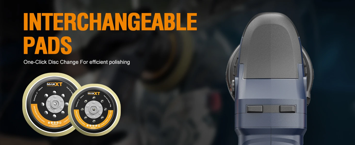 Polisseuse orbitale sans fil, plaque de support de 150 mm/6 po, puissance à double action de 2 300 à 3 800 tr/min