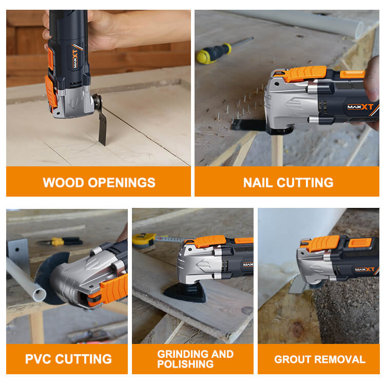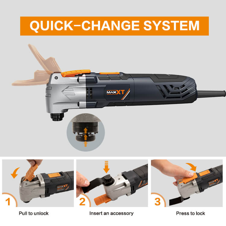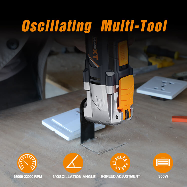 MAXXT Oscillating Multi Tool 300W 6 Variable Speeds, 3° Oscillation Angle, Tool-Free Quick Change Blade System for Details Cutting, Sanding, Scraping, Trimming, Grinding