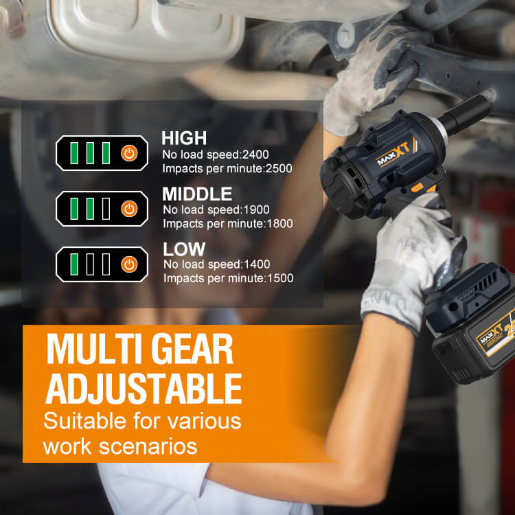 MAXXT 20V Akülü Darbeli Anahtar, Maksimum Tork 1000Nm, 1/2″ kare çıkış mili, 3 hız