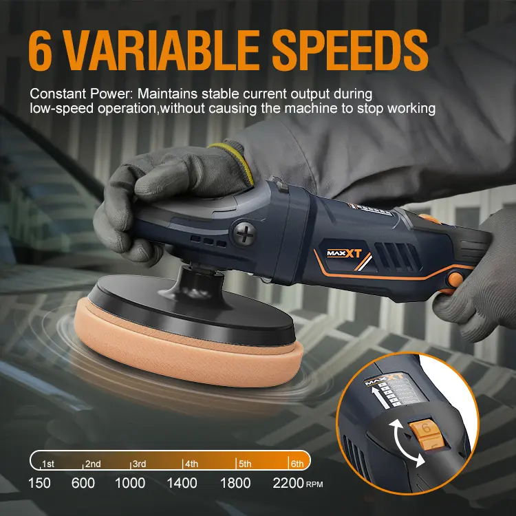 MaxXT Kablosuz Döner Cila Makinesi, 150mm/6″ destek plakası, 150rpm (Mum hazırlama hızı) 600-2200rpm