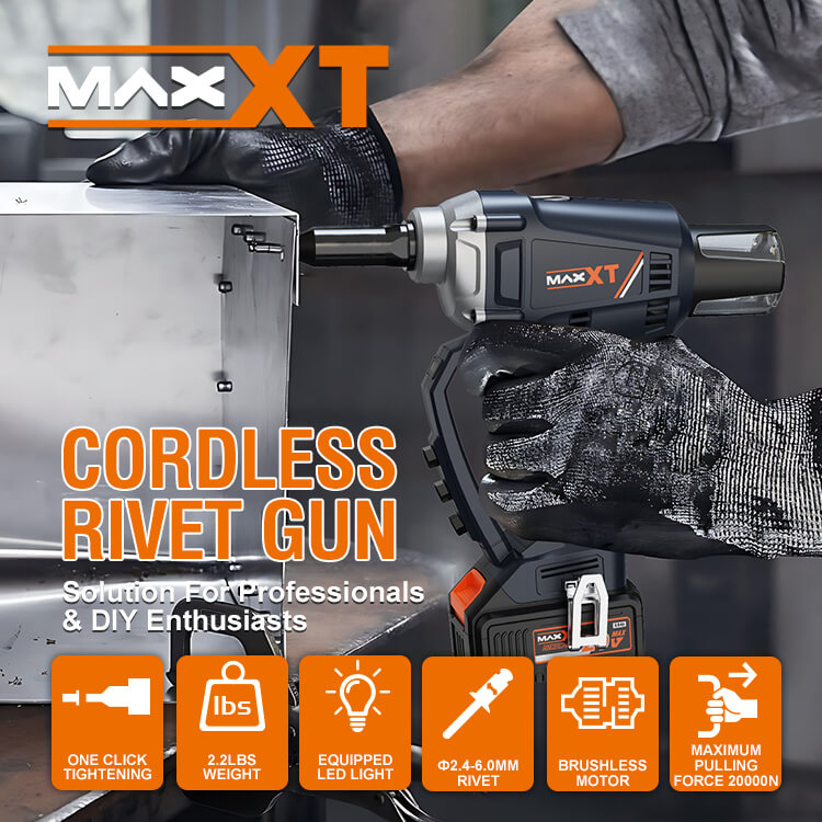 MAXXT Kablosuz Perçin Alet Seti, 3/32 – 3/16 “(2,4 mm-6,0 mm), Fırçasız, Endüstriyel Sınıf, Pil (1 adet) ve Şarj Cihazı ile, Kılıflı Kablosuz Perçin Tabancası Seti