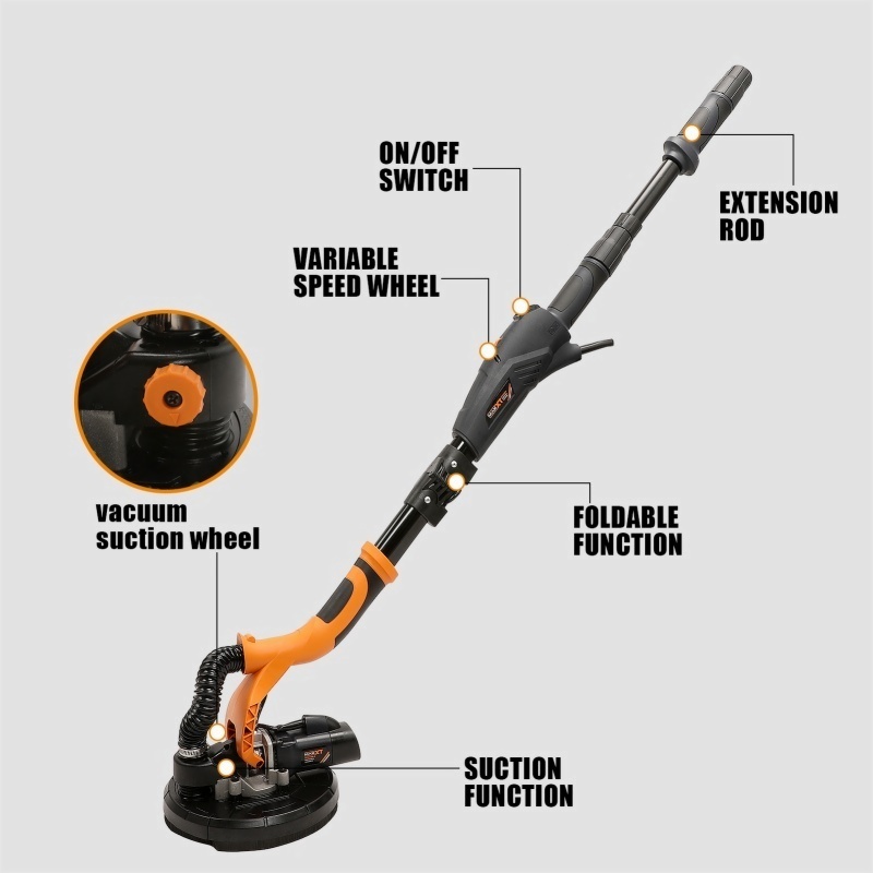 Kafa 90 derece ayarlanabilir, duvar ve tavan zımparalama için mükemmeldir