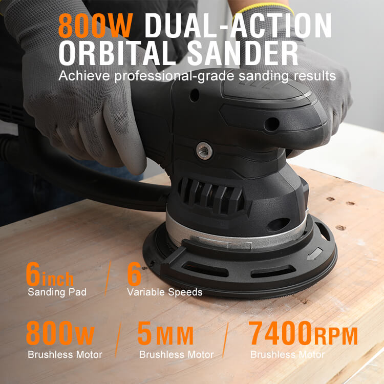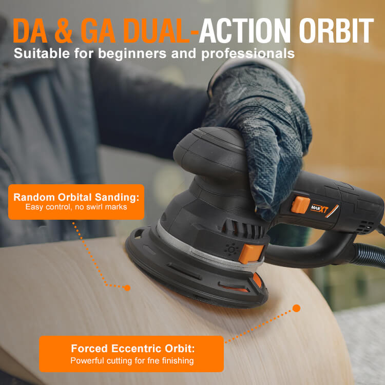 MaxXT Orbital Zımpara, 800W Güçlü motor, 5 mm yörünge, 6″ (150 mm) destek plakası, çift mod, değişken hız 3300-7250rpm